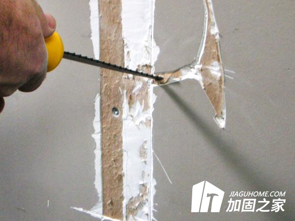 如果是墙纸出现裂纹,用刀从大约6到12公分的地方开始刮掉任何松散的化合物,用刀片或干墙锯将裂纹扩展到壁表面避免在裂纹本身之外去除坚固、粘附良好的化合物。
