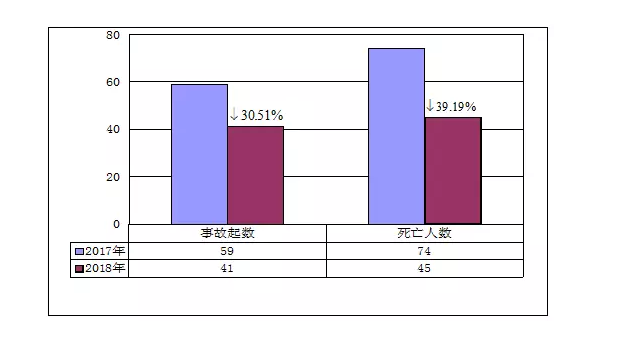 2018年3月,全国共发生房屋市政工程生产安全事故41起、死亡45人,比去年同期事故起数减少18起、死亡人数减少29人,分别下降30.51%和39.19%。