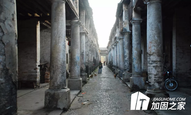 古街的两边是骑楼走廊和商铺。商铺有42间,用42根柱子支撑,其中一部分的柱子为欧式罗马柱,形成了一种中西结合的建筑特色。“其中有20根是欧式的罗马柱,商铺两层上面住人,下面作商铺,龙冈古街建成之后,几年都很兴旺,到2006年被佛冈县列为文物古迹。”石角镇科旺村党支部书记刘社南介绍。